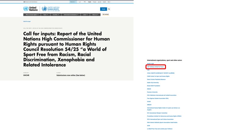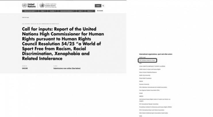 Inputs for the UN High Commissioner for Human Rights’ Report on A World of Sport Free from Racism, Racial Discrimination, Xenophobia, and Related Intolerance